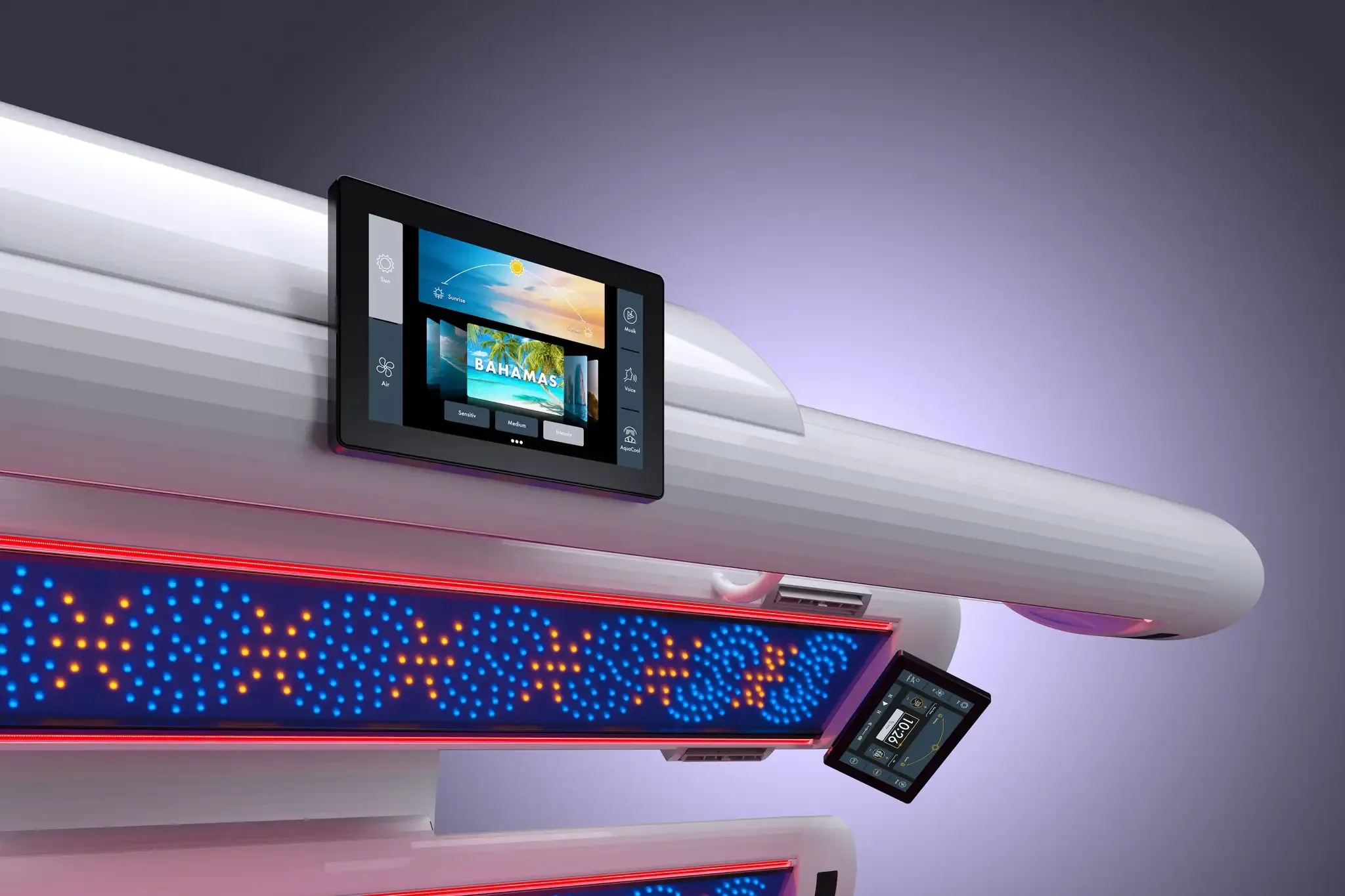 A fully digital sunbed with powerful results and advanced comfort. Built for full-body tanning without overheating or streaking.